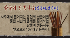 »çÁÖÀÇ »ì(ß°)À» Ç®ÀÌÇÏ´Â ¿î¼¼ : »ìÇ®ÀÌ Á¤Åë»çÁÖ | õ±â ºÎºÎ±ÃÇÕ | ¹«¼Ó ħ½Ç±ÃÇÕ | »ìÇ®ÀÌ Àϳâ¿î¼¼ | ¿î¼¼ °áÈ¥»ó´ëÀÚ | ¿µÇèÇÑ Àü»ýÇ®ÀÌ | ³«ÅÂ,ÀÓ½ÇÁßÀý »ìÇ®ÀÌ»çÁÖ | ³²ÀÚ ¼º°ø,Àç¹° »ìÇ®ÀÌ